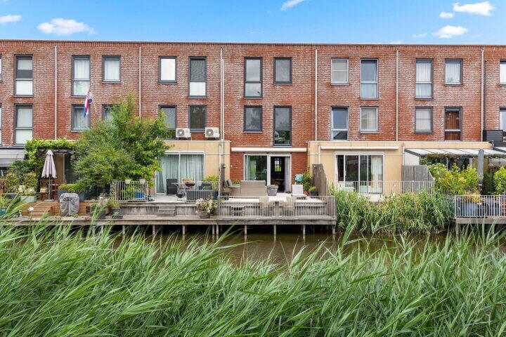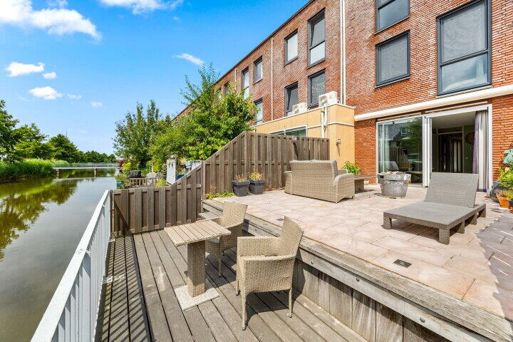 Royale tussenwoning met vier grote slaapkamers en heerlijk terras aan het water